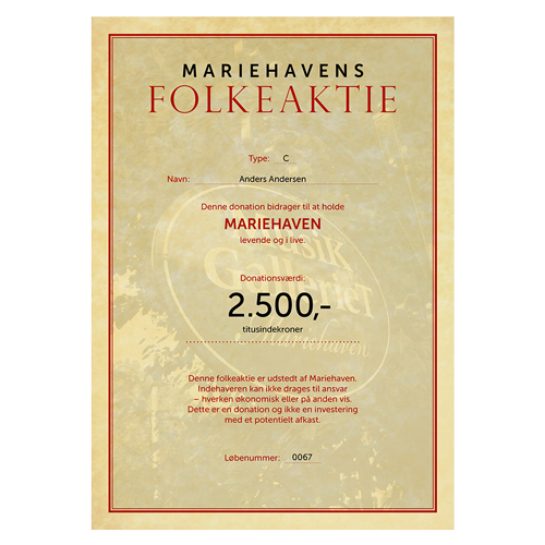 Som folkeaktionær kommer dit navn desuden på Mariehavens folkeaktietavle og på hjemmesiden.