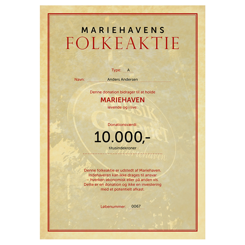 Du modtager en fysisk aktie som bevis på din investering i Mariehaven.